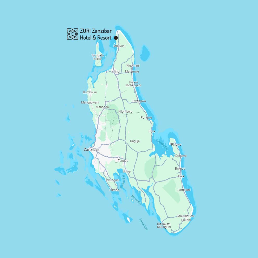 Zuri Zanzibar is located in Kendwa village, which sits on the west-facing shores of the island, just 50 km from Stone Town and its international airport.